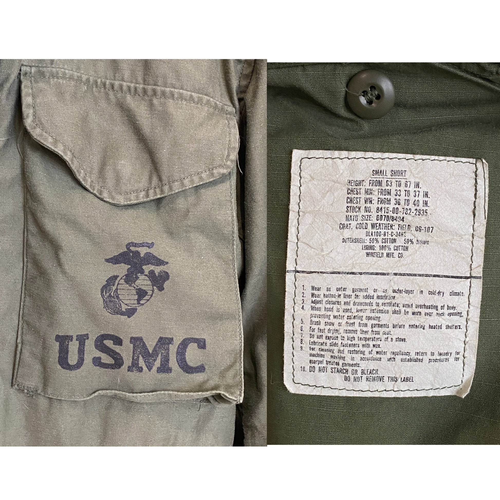 X Small Reg. Authentic USMC 1981 US M-65 field jacket Military